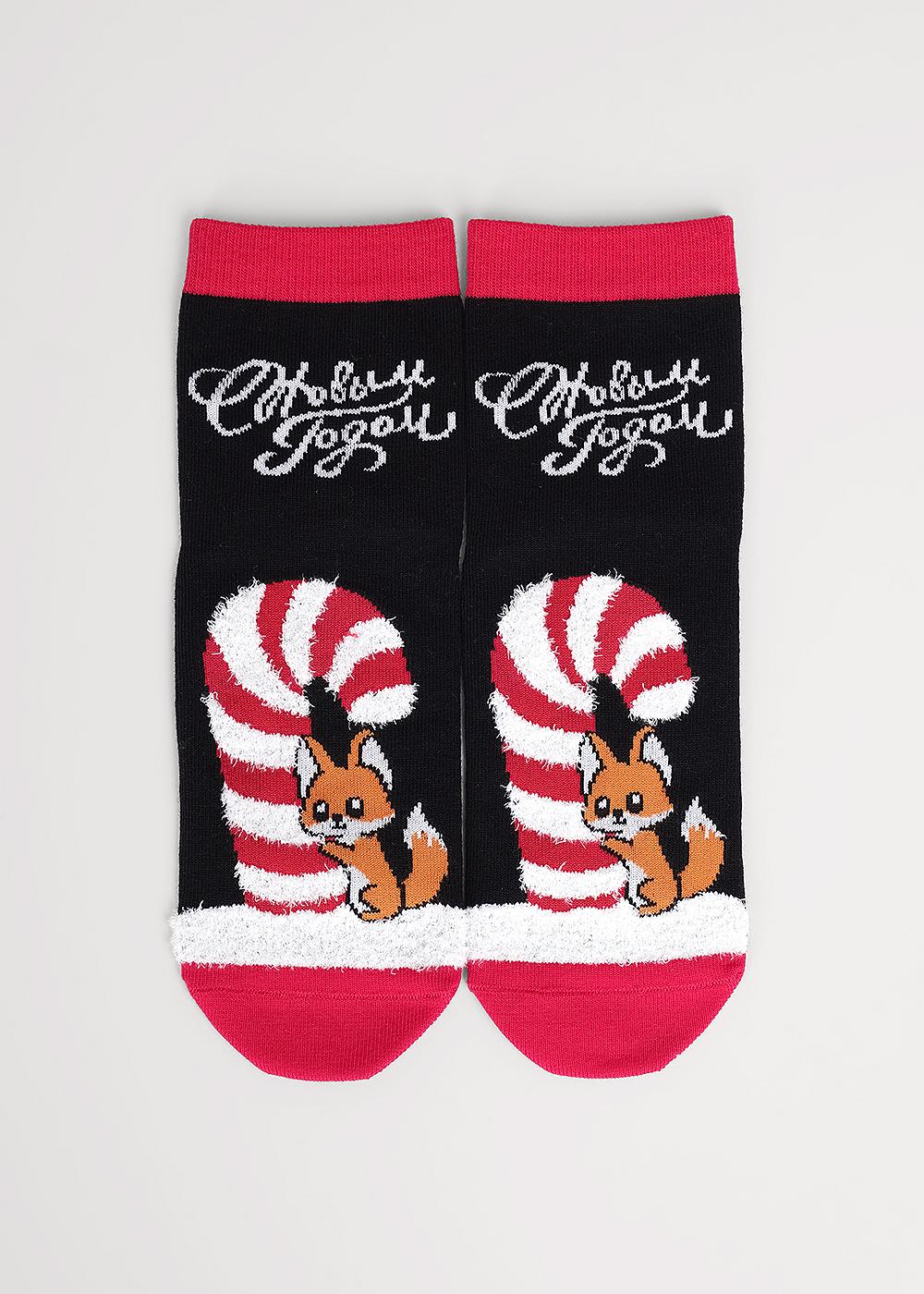 Носки женские с рисунком "большая конфета с лисичкой" и надписью "С Новым годом!"