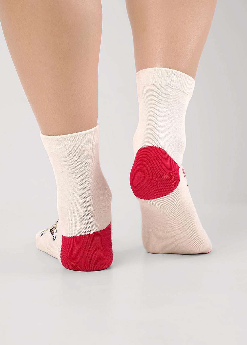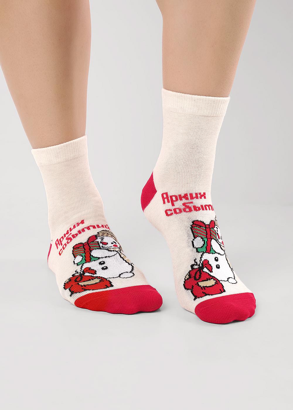 Носки женские с рисунком "Снеговик с подарками" и надписью "Ярких событий!"