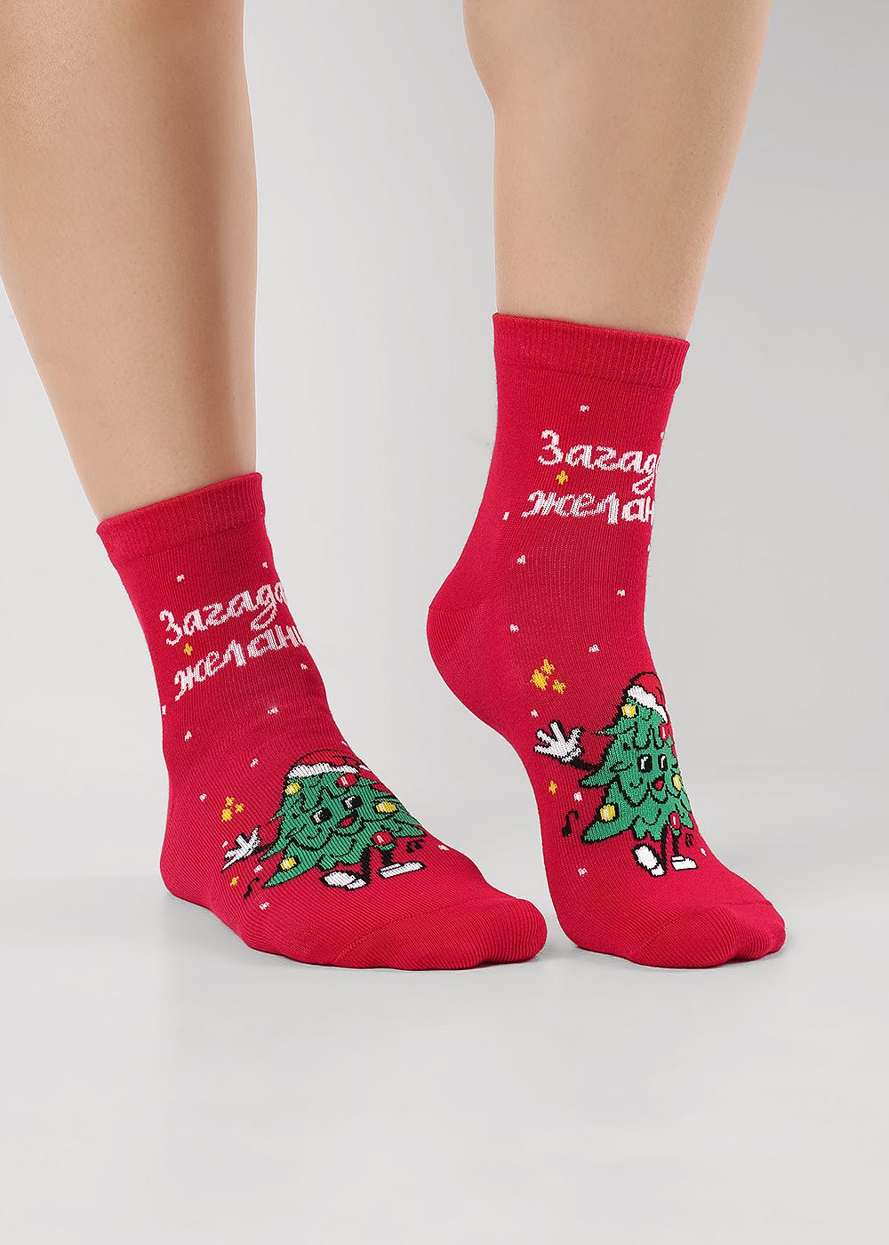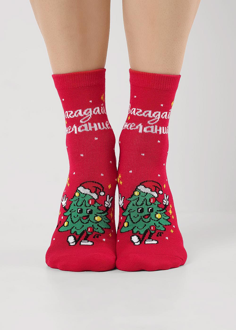 Описание: Носки женские с рисунком Весёлая ёлочка и надписью Загадай желание