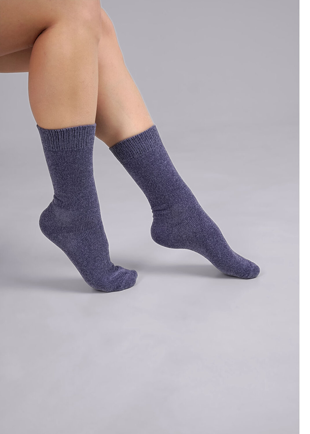 мягкие уютные удлиненные женские носки с широкой резинкой, связаны из пряжи "синель"