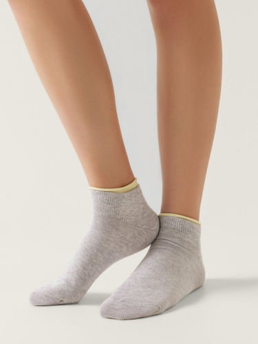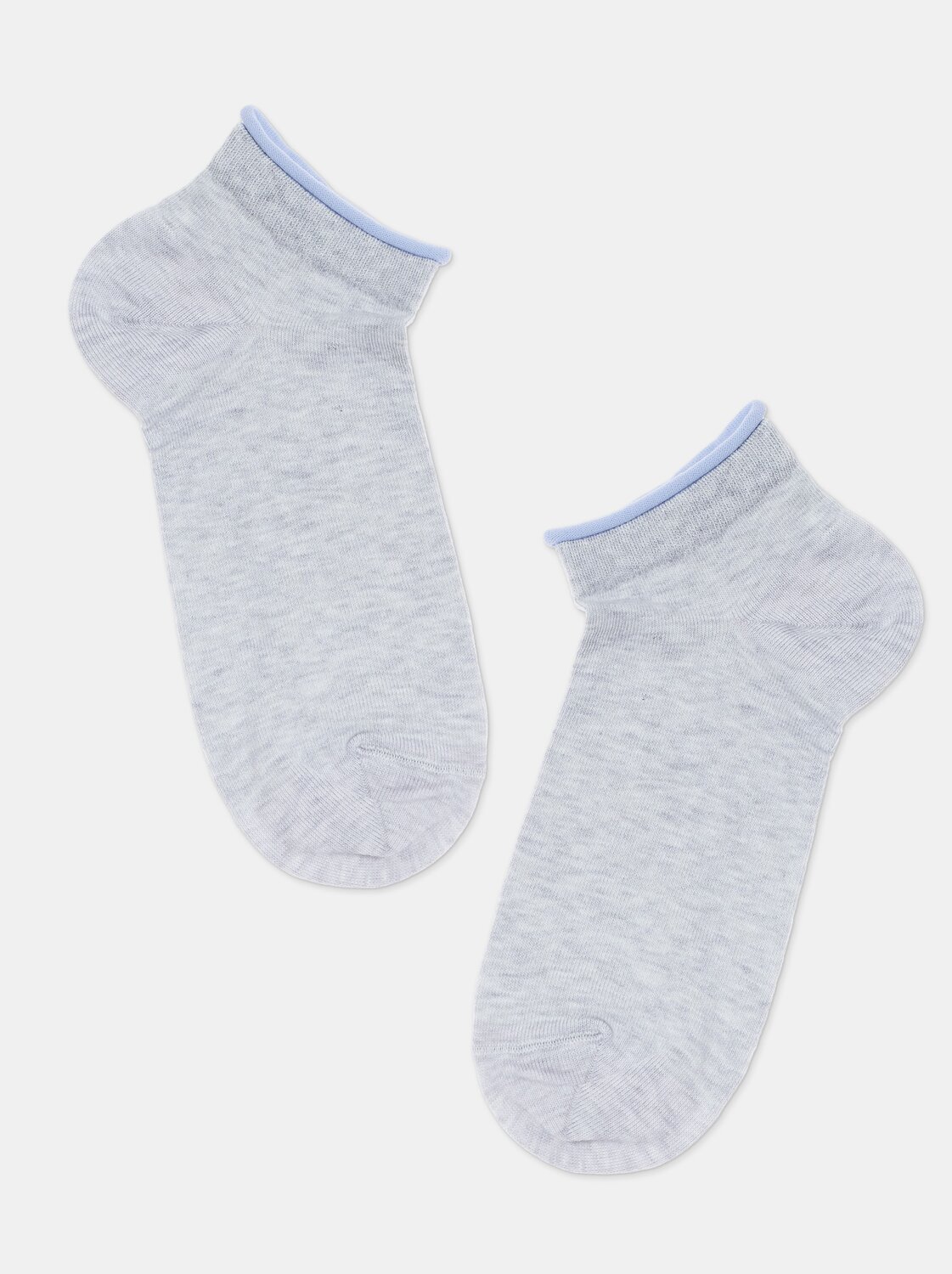 Укороченные спортивные женские носки из хлопка, однотонные с контрастной декоративной отделкой по краю резинки.