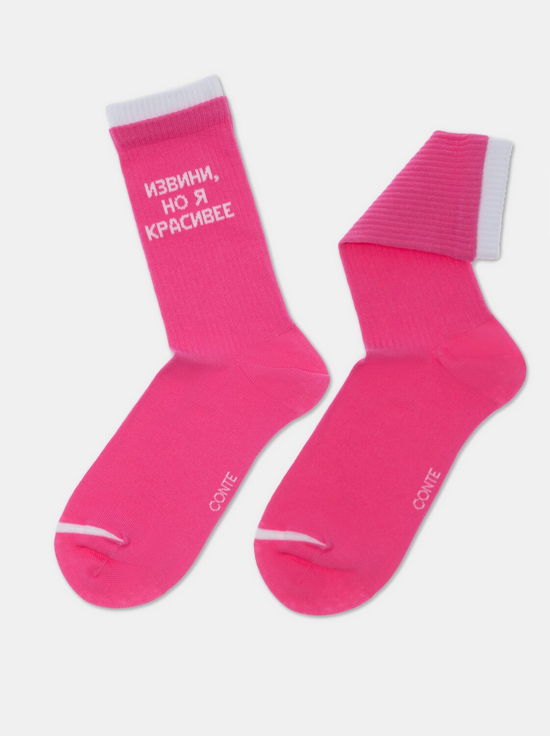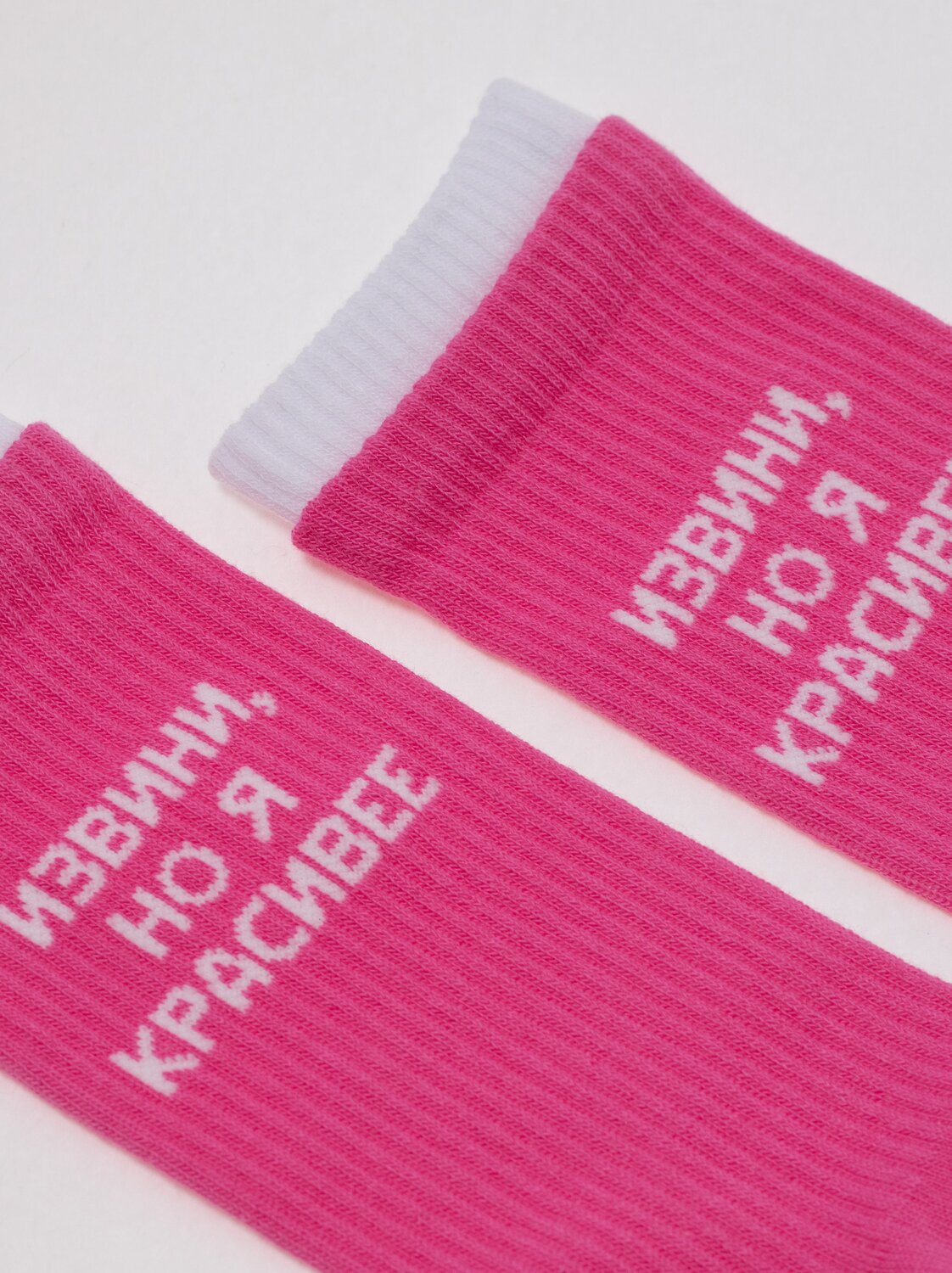 Удлиненные носки мягкого хлопка в рубчик с надписью «Извини, но я красивее» станут креативным дополнением повседневного, спортивного или домашнего гардероба.
