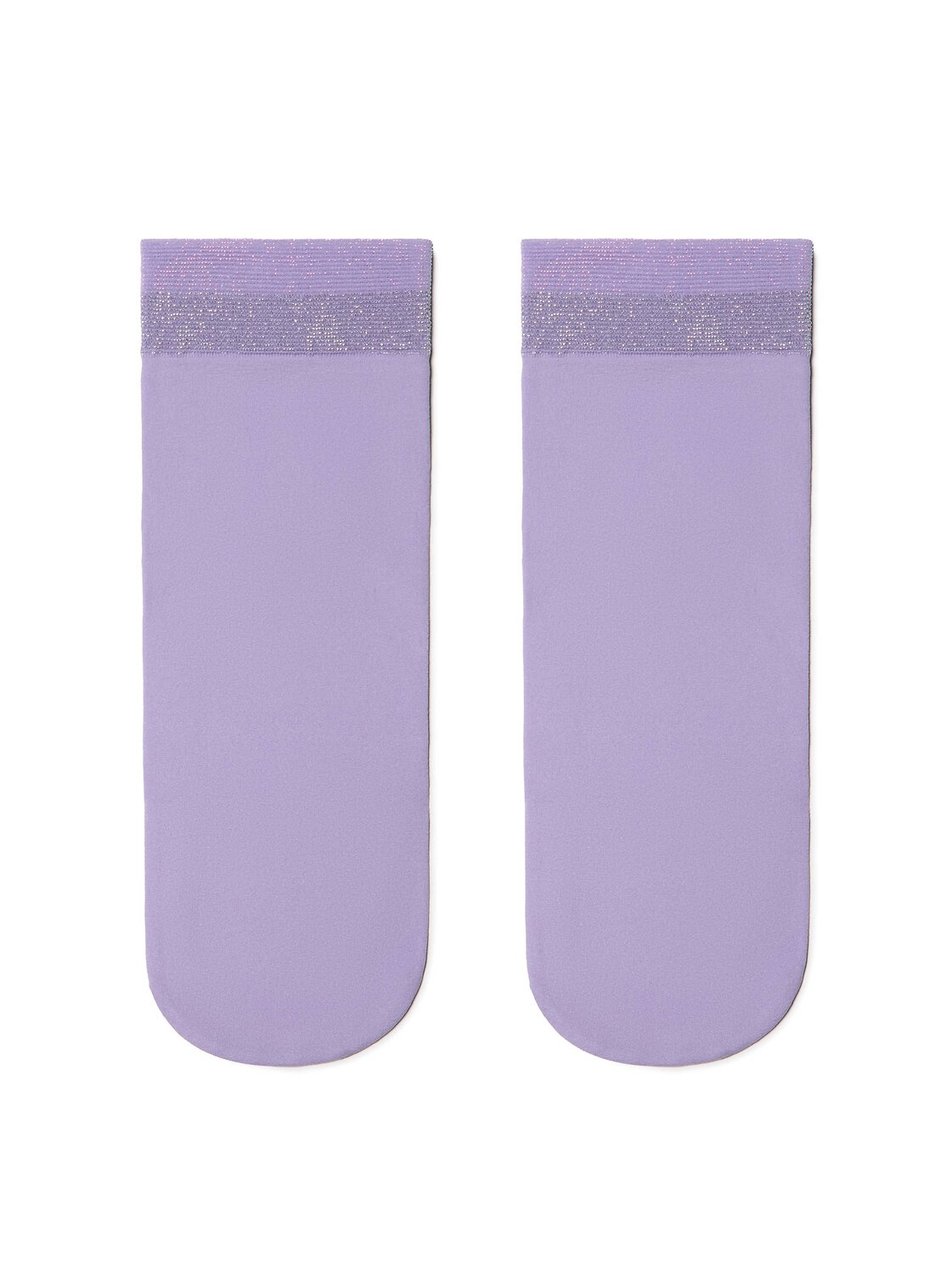 Однотонные фантазийные носки с сияющим бортиком из люрекса созданы для девушек, которые любят выглядеть оригинально и с удовольствием подчеркивают свою индивидуальность.
