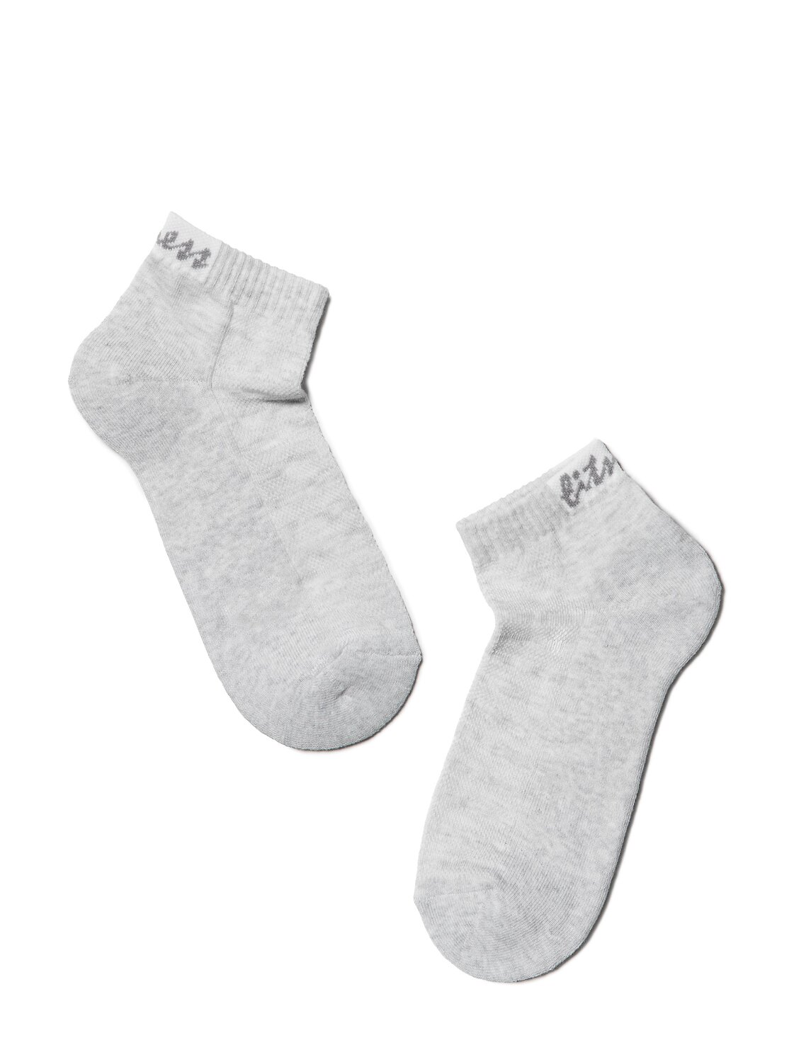 Укороченные спортивные женские носки из хлопка, с махровой стопой, с рисунками. Светло-серый