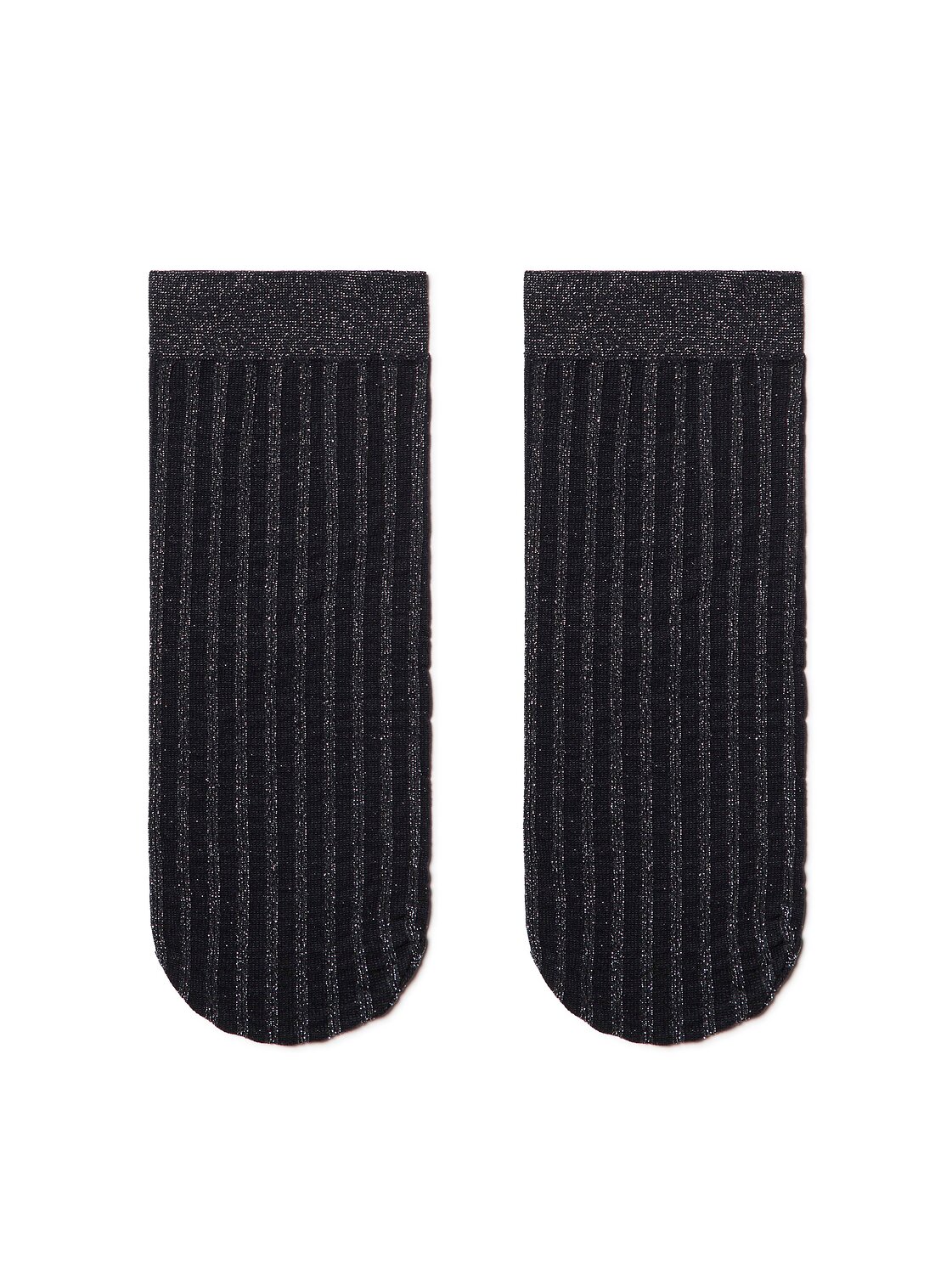 Эластичные носки в полоску с ненавязчивым блеском люрекса созданы для девушек, которые любят выглядеть оригинально и с удовольствием подчеркивают свою индивидуальность.