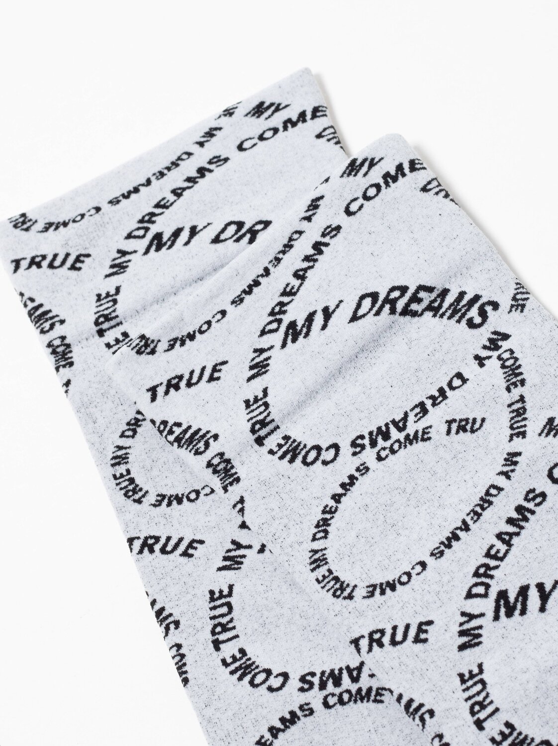 Плотные носки с вывязанным рисунком «My dreams» станут эффектным дополнением ваших повседневных образов и подарят комфорт в прохладную погоду.