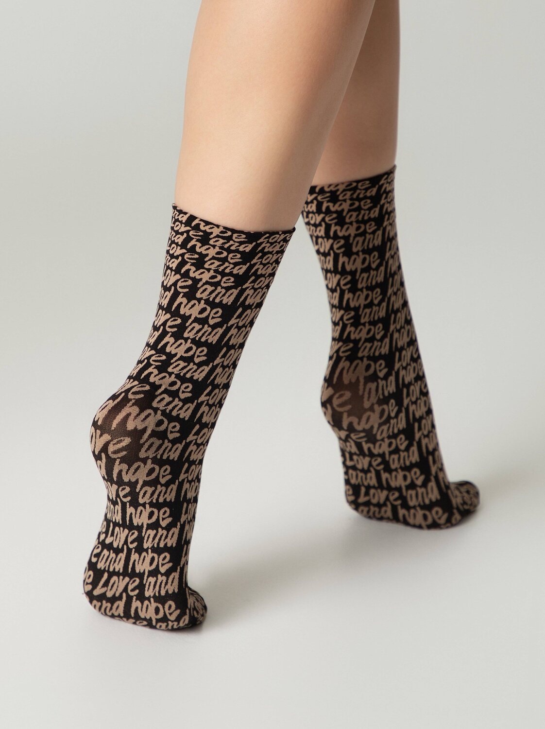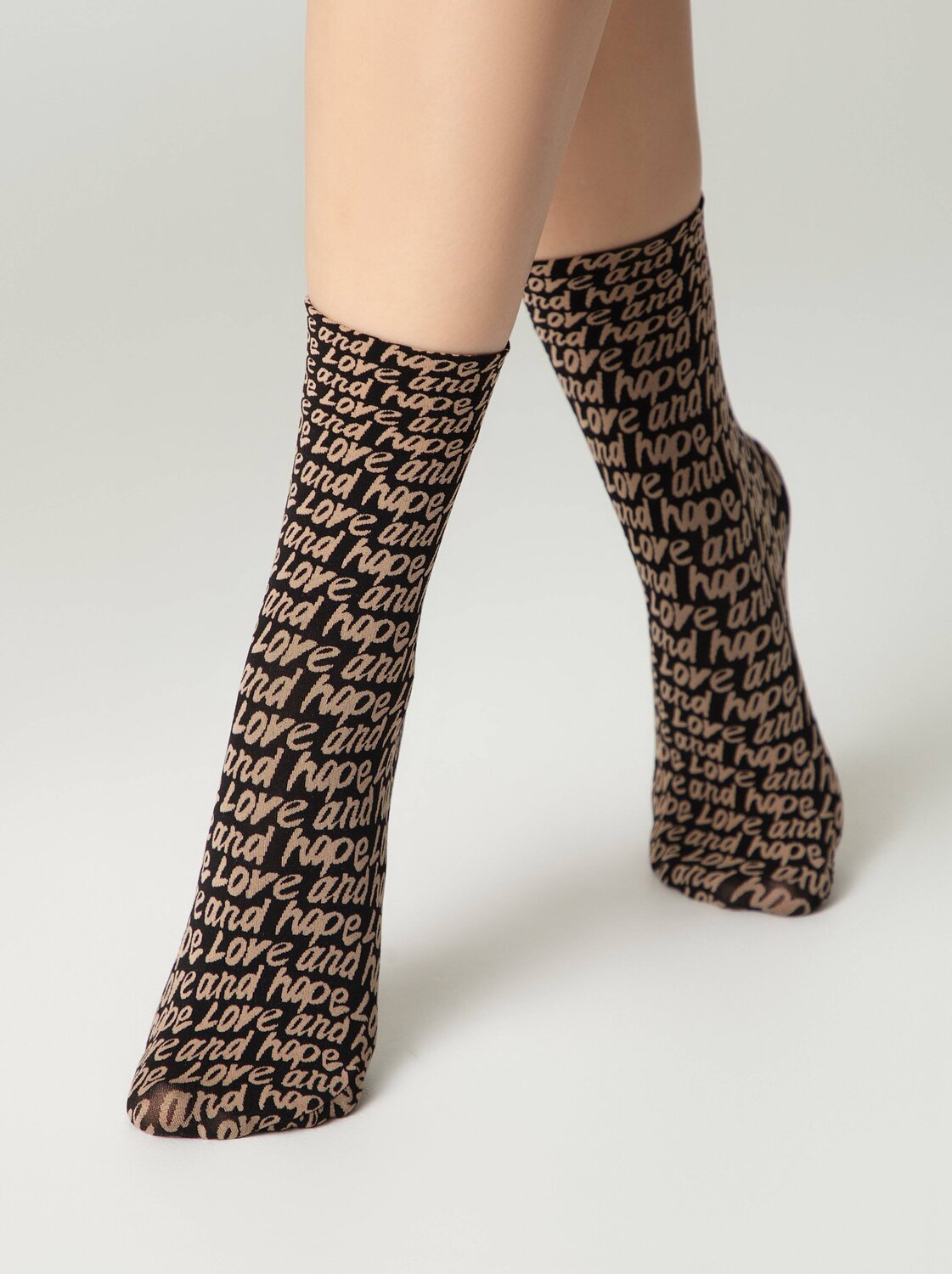 Плотные носки с вывязанным рисунком «Love» станут эффектным дополнением ваших повседневных образов и подарят комфорт в прохладную погоду.
