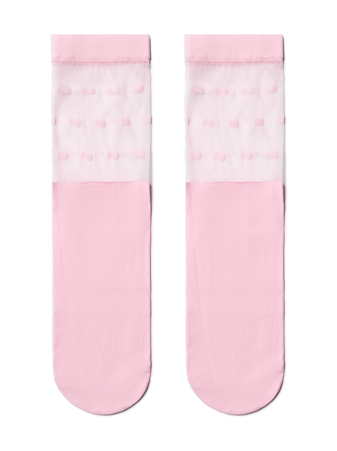 Удлиненные носки с прозрачным верхом в горошек созданы для девушек, которые любят выглядеть оригинально и с удовольствием подчеркивают свою индивидуальность.