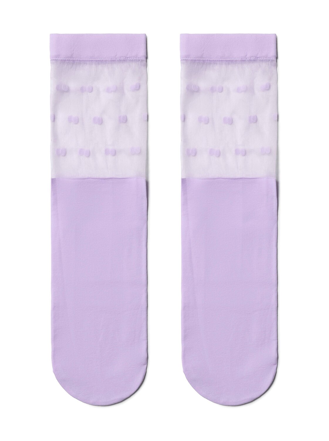 Удлиненные носки с прозрачным верхом в горошек созданы для девушек, которые любят выглядеть оригинально и с удовольствием подчеркивают свою индивидуальность.