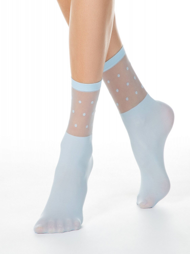 Удлиненные носки с прозрачным верхом в горошек созданы для девушек, которые любят выглядеть оригинально и с удовольствием подчеркивают свою индивидуальность.