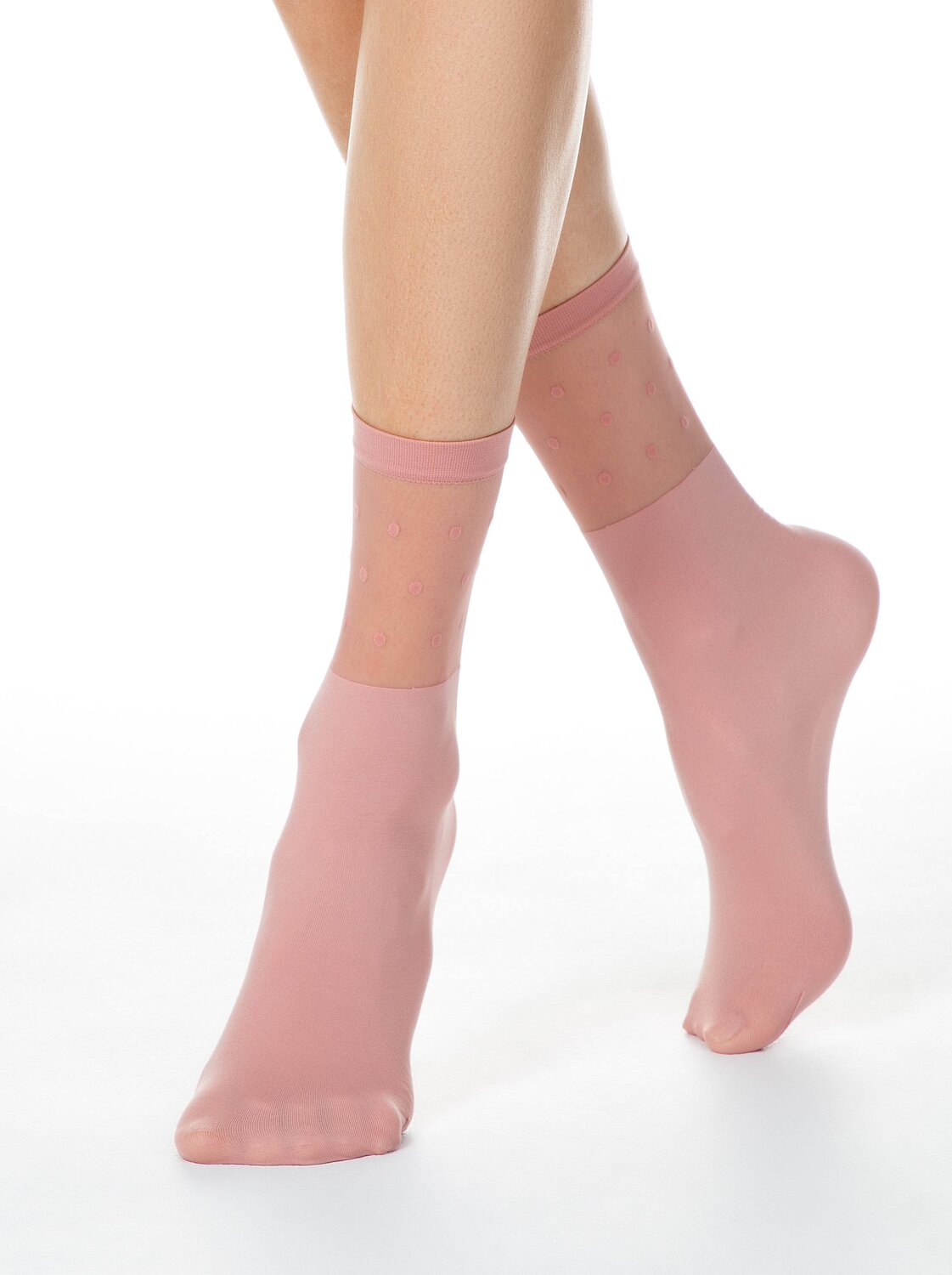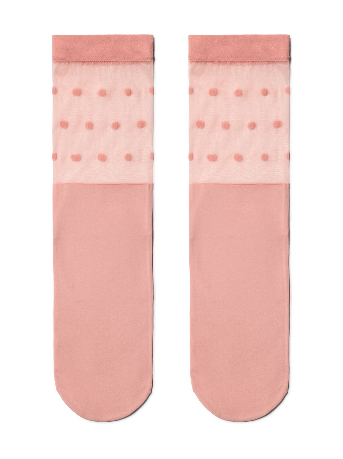 Удлиненные носки с прозрачным верхом в горошек созданы для девушек, которые любят выглядеть оригинально и с удовольствием подчеркивают свою индивидуальность.