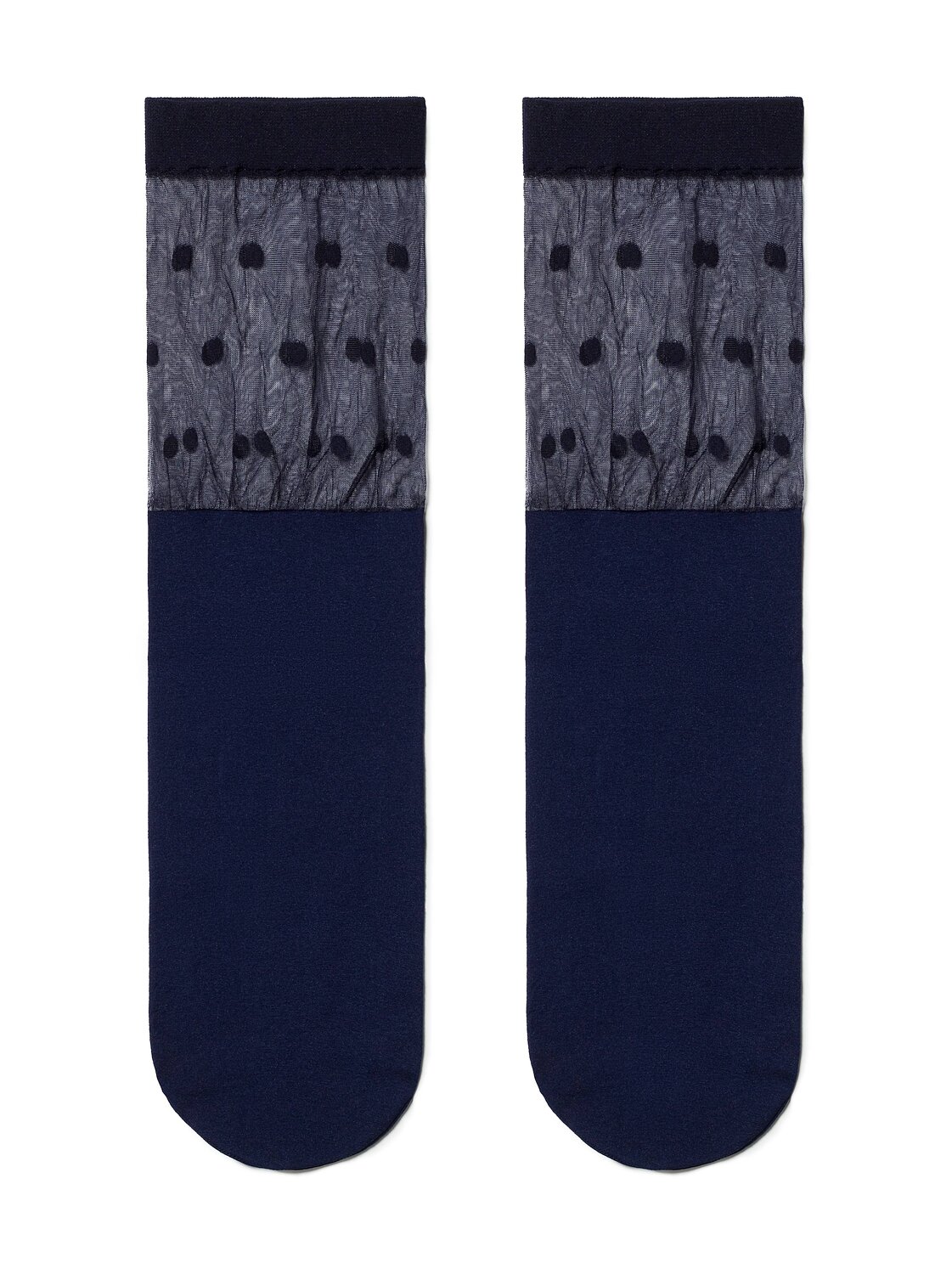 Удлиненные носки с прозрачным верхом в горошек созданы для девушек, которые любят выглядеть оригинально и с удовольствием подчеркивают свою индивидуальность.