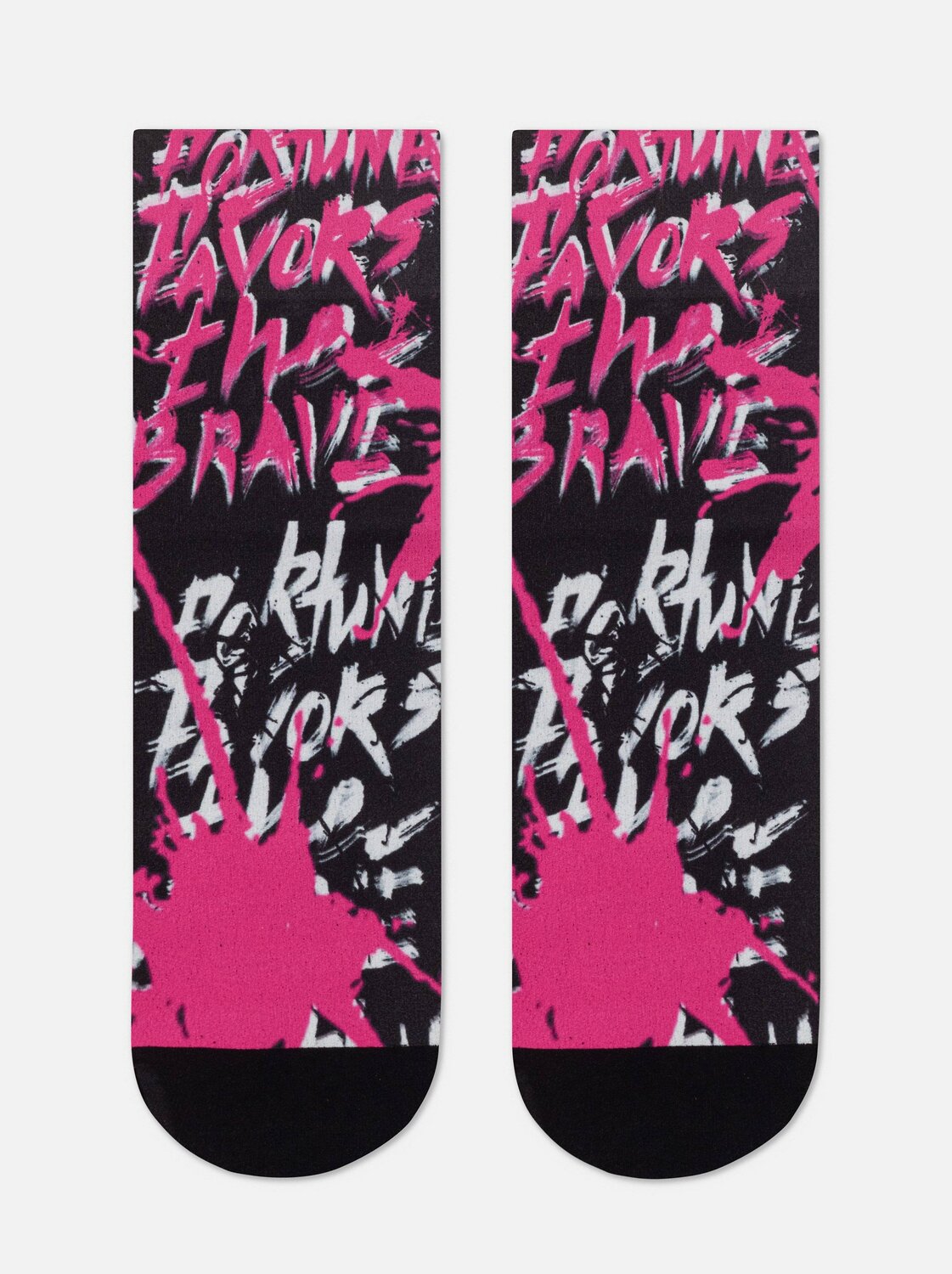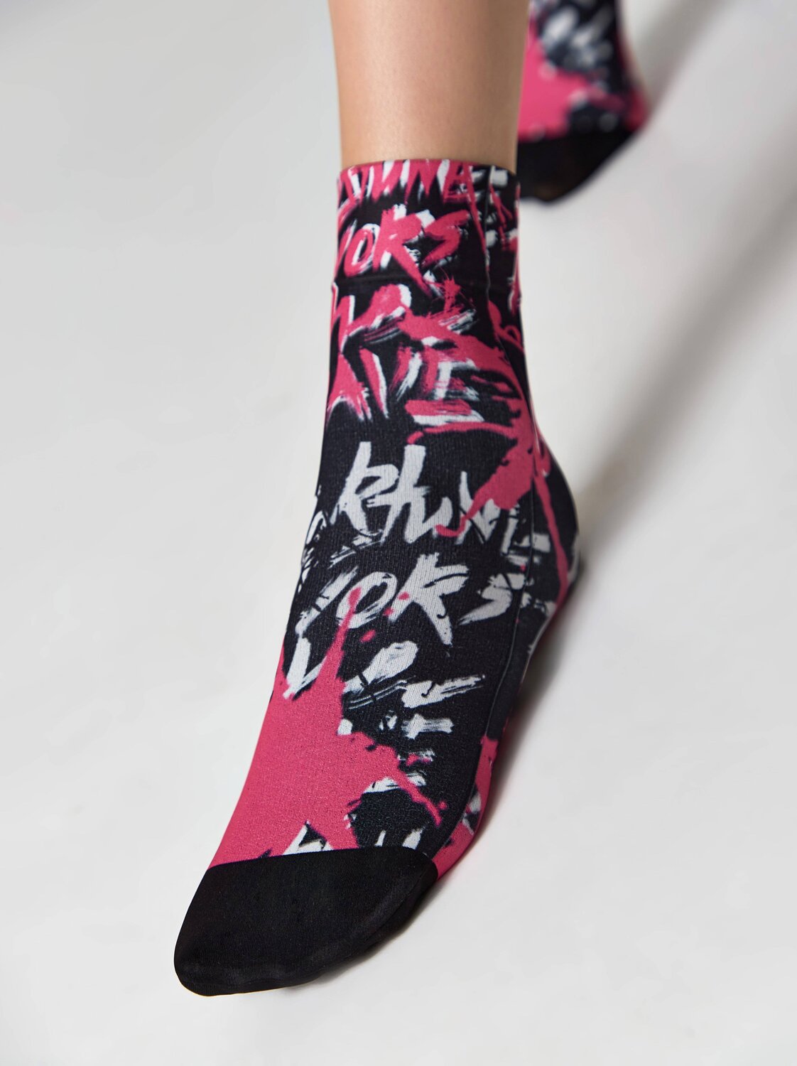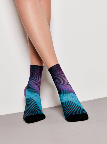 Плотные носки с особенно устойчивым рисунком, нанесенным с помощью термотрансферной печати, станут стильным и индивидуальным акцентом в повседневных образах. Термотрансферная печать - процесс, при котором специальная краска на бумажном носителе резко нагревается, переходит из твердого состояния в газообразное и переносится с бумаги на носки, глубоко проникая в волокна и создавая устойчивое изображение. · 70 den· плотные и эластичные· рисунок, нанесенный с помощью термотрасферной печати· использование черной полиамидной нити для контрастности рисунка· мысок выделен черной полиамидной нитью· эффект 3D· c бортом· без пятки· стиль начинается с индивидуальности. mix