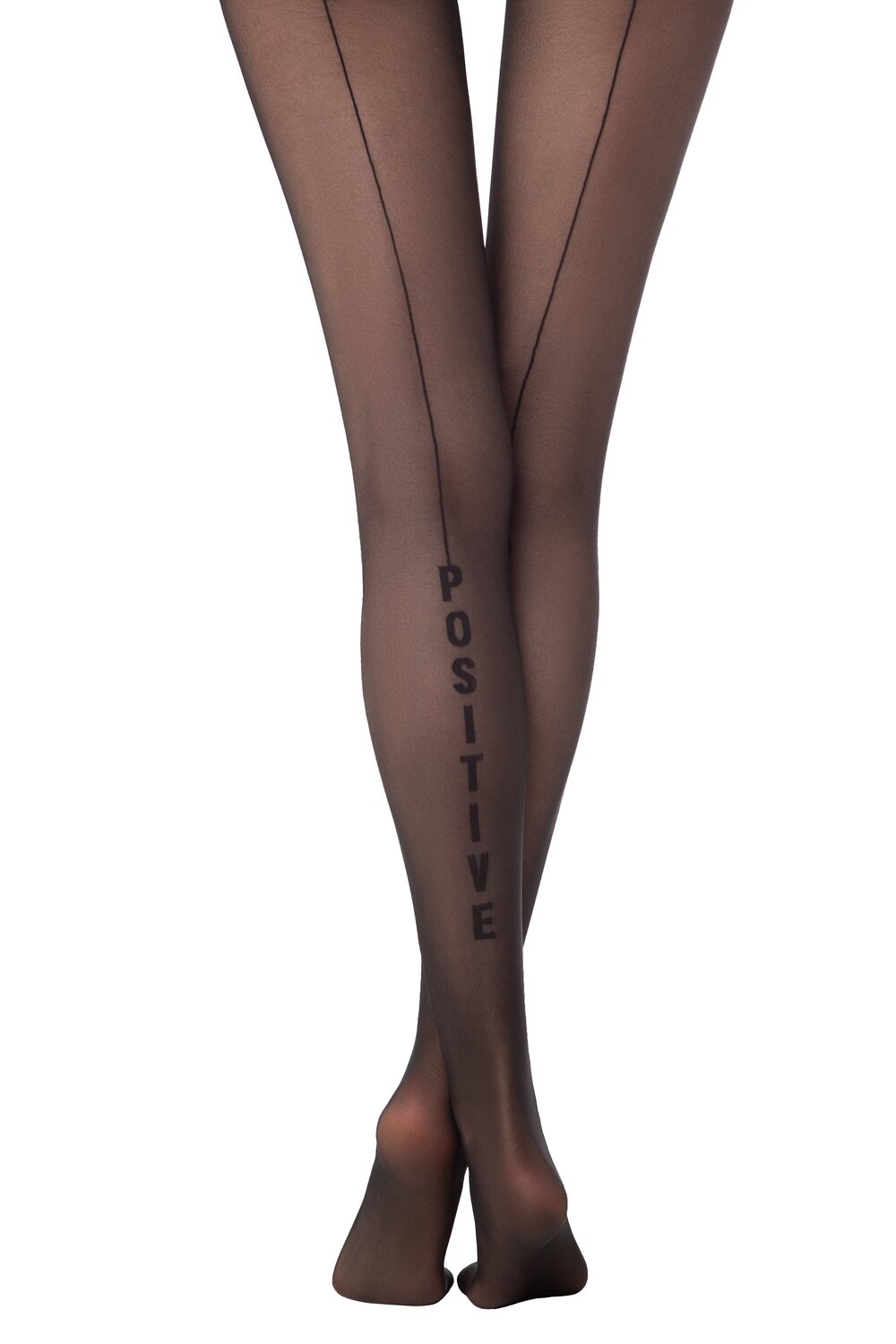 Поднимают настроение, добавляют индивидуальность в повседневный гардероб и выглядят интригующе – колготки с имитацией шва сзади и надписью Positive созданы для запоминающихся образов.