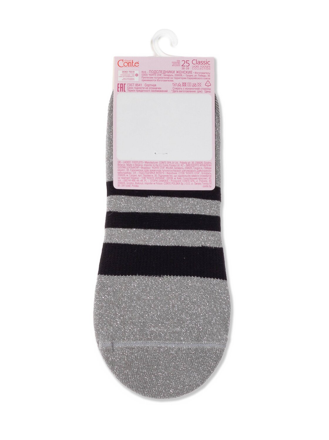 Эластичные подследники CLASSIC станут изюминкой образа благодаря сиянию люрекса и декоративным лентам-ремешкам. На запяточную часть нанесено специальное антискользящее покрытие, поэтому подследники отлично сидят на ноге и не сползают. серый