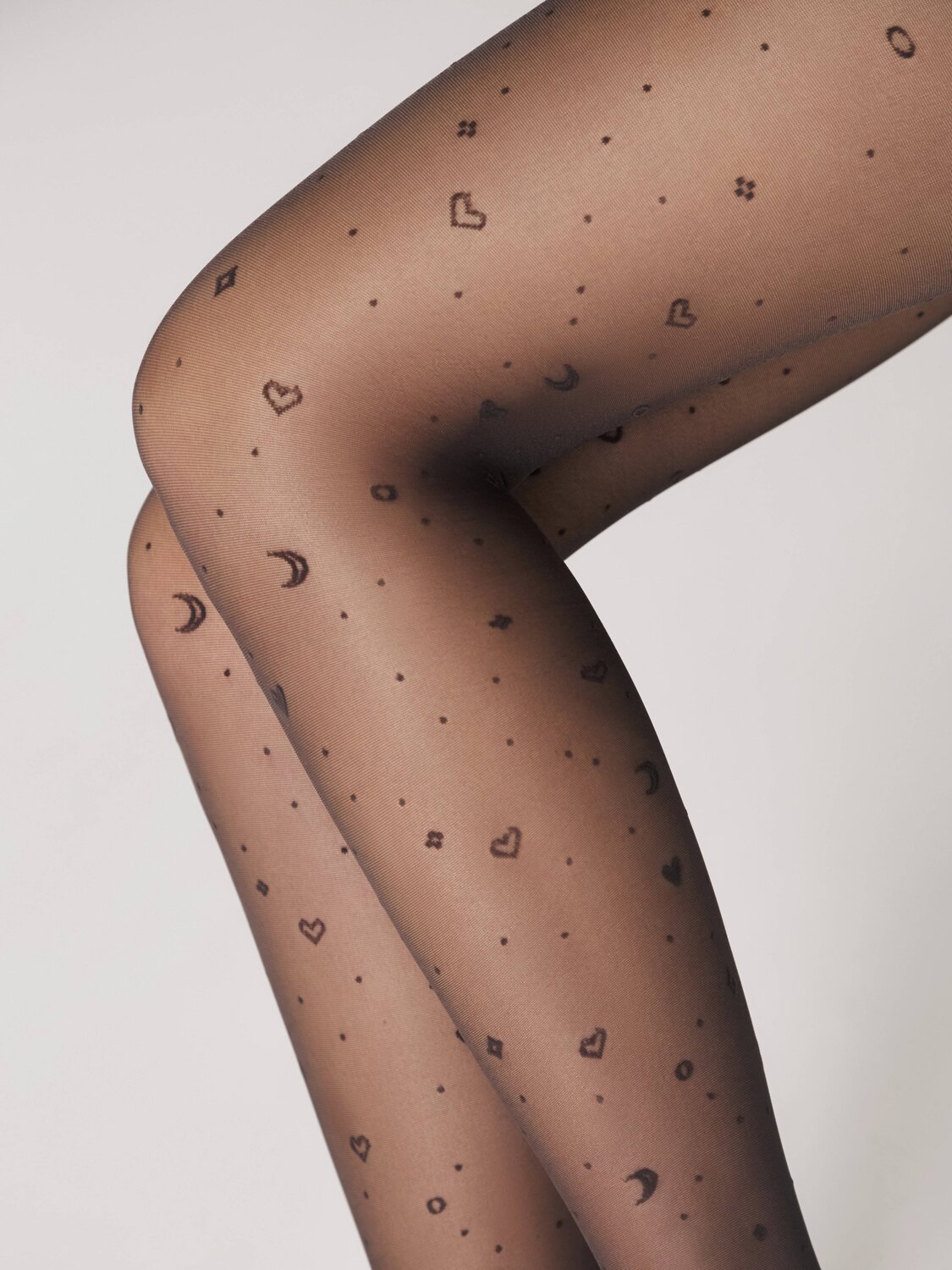 Колготки с рисунками MOON удачно дополнят повседневные и вечерние образы. Колготки эластичные, легкие, плотно облегающие фигуру, поэтому вам будет комфортно носить их на протяжении всего дня.