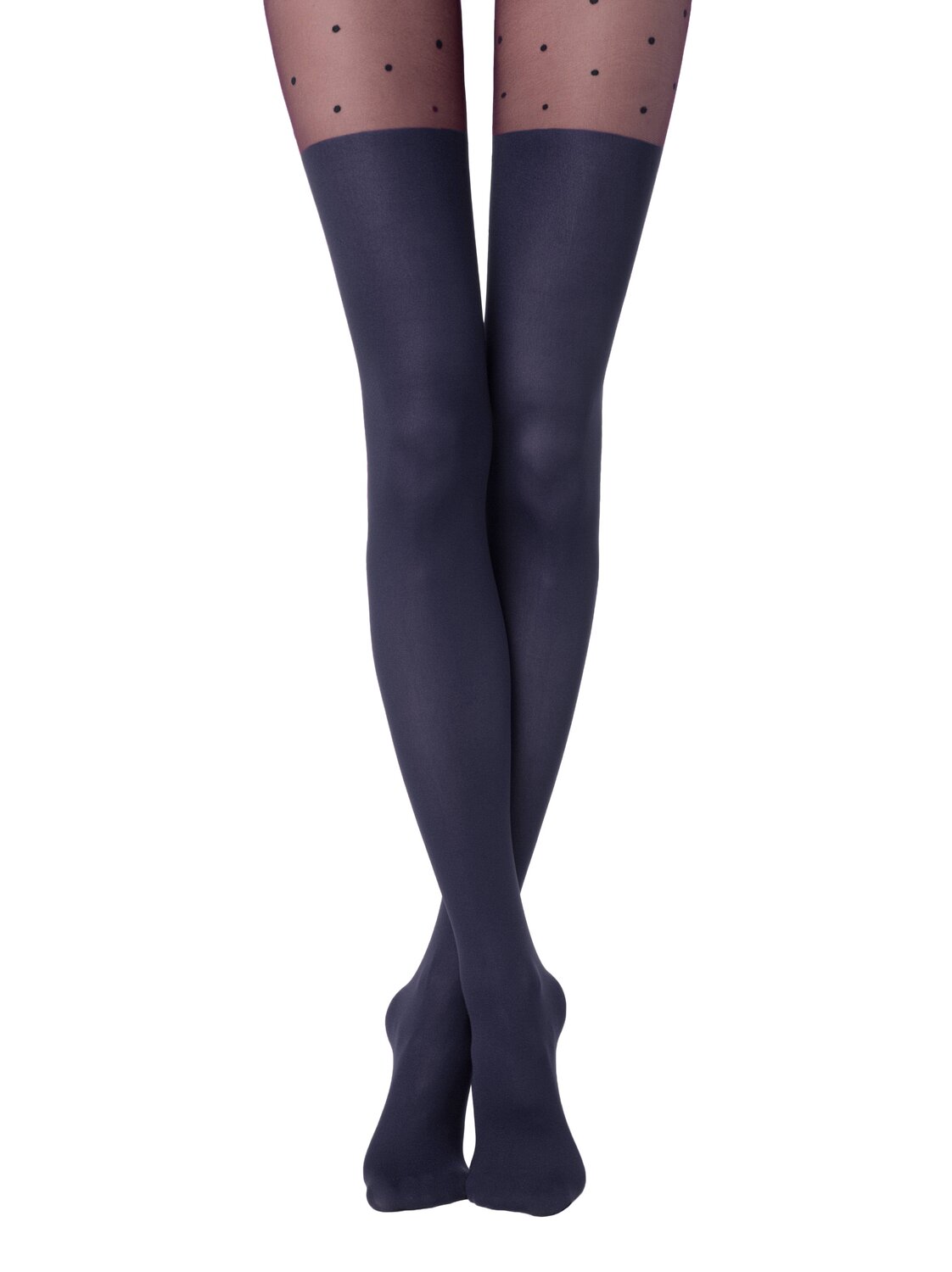Стильные фантазийные колготки SENSATION объединили в себе сразу два тренда этого сезона - имитацию гольфинов и рисунок "в горошек". Эти колготки смело можно выбирать как для создания модного повседневного образа, так и для праздничных мероприятий.