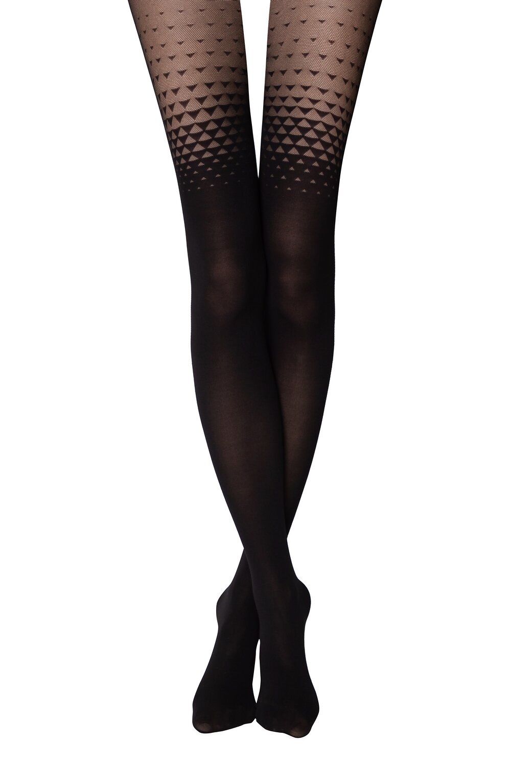 Плотные эластичные женские колготки 70 ден с геометрическим рисунком "имитация гольфинов", плотность верхней части 30 ден, плоский шов, хлопковая ластовица.