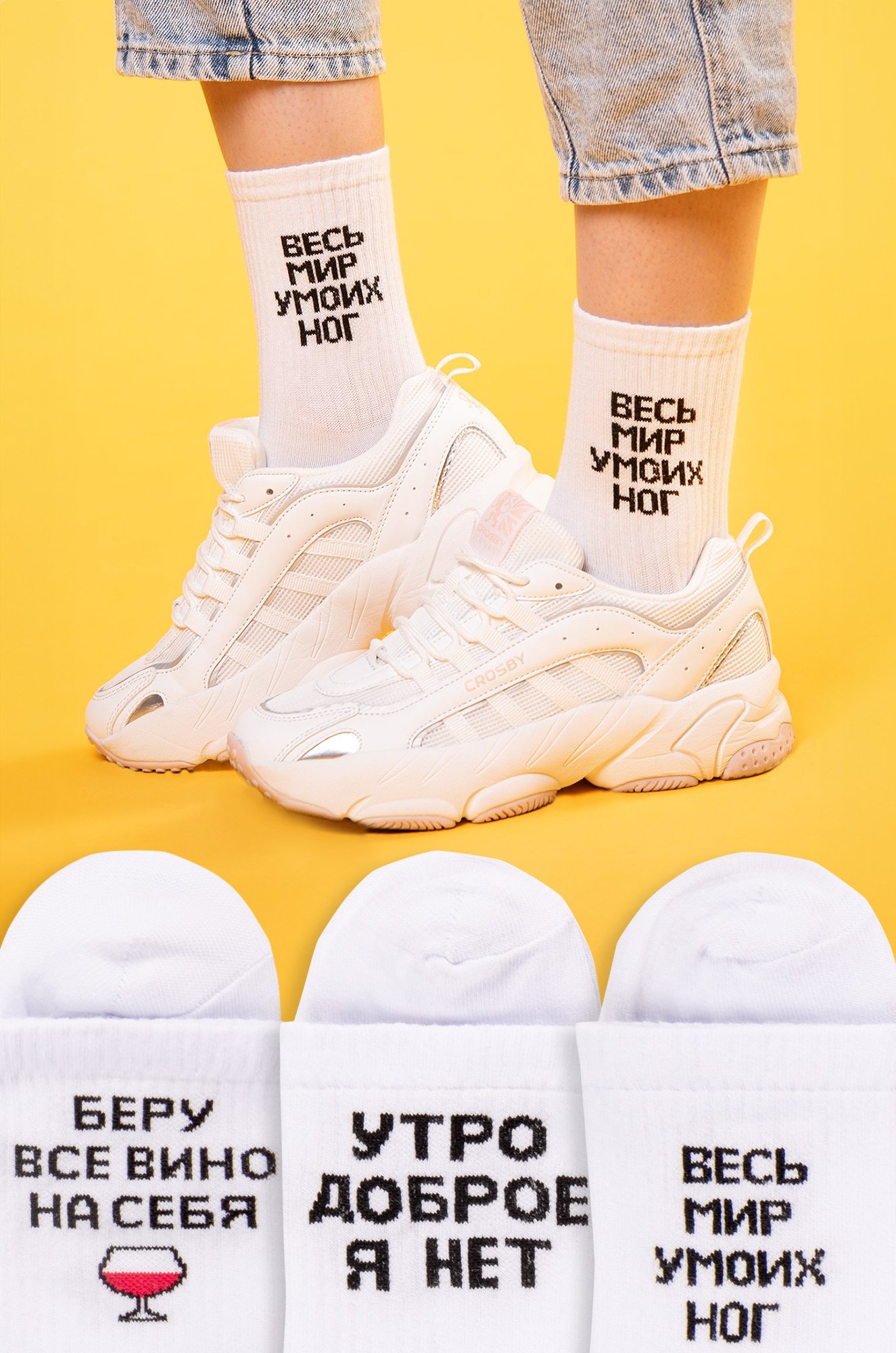 Прикольные носки станут стильным аксессуаром, который подчеркнет неповторимый образ и привлечет внимание к вашей персоне. Женские носки отлично смотрятся с кроссовками и укороченными джинсами. Носки белого цвета с принтом – отличный выбор на каждый день.