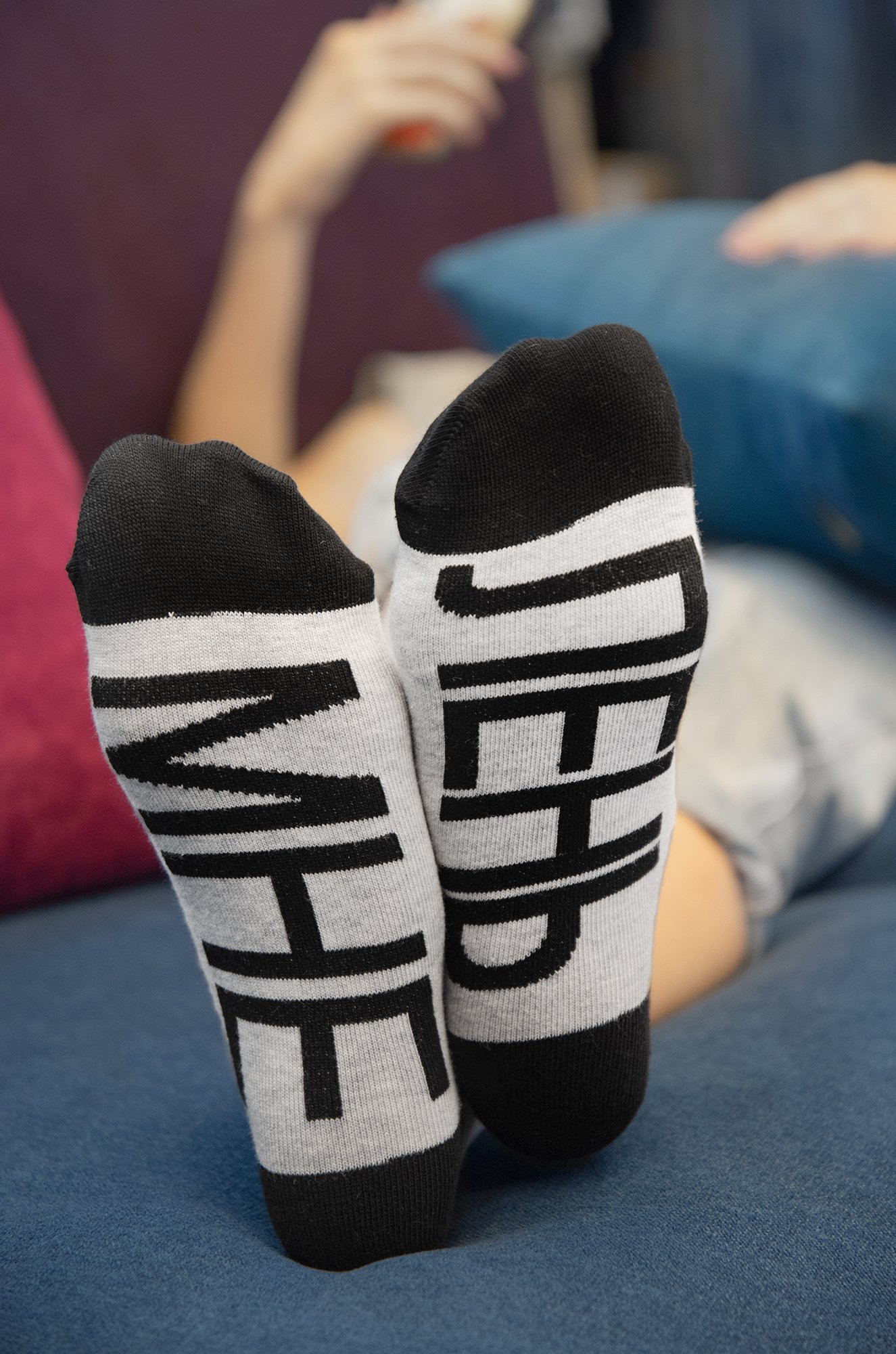 Прикольные носки станут необычным аксессуаром, который говорит о настроении обладателя! Тематические надписи делают образ стильным и характерным. Женские и мужские носки подходят под классическую и спортивную одежду – отличный выбор на каждый день.