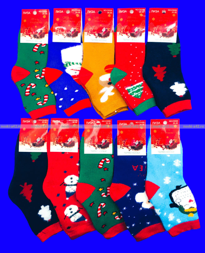 Лиза термоноски детские внутри махра Новогодние  - в упаковке 10 пар одного размера разного цвета, разных рисунков.