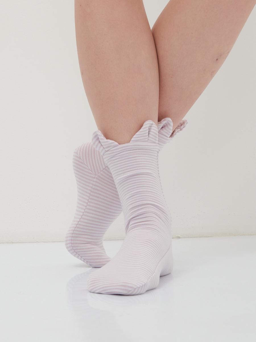 Носки женские, из трикотажной ткани в полоску. С имитацией кошачьих ушек по полочке. Стильные, согревающие и радующие глаз носки с ушками, дарят ощущение тепла и уюта. Ткань мягкая, теплая и очень приятная к телу. Рост модели 175 см. Изделие на модели 36-37р-ра. Длина изделия 31 см. Машинная стирка при 30 градусах