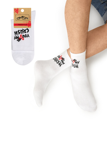 Носки унисекс OMSA с рисунком You My Crush. В составе - высококачественный хлопок, который позволяет коже дышать, отлично впитывает влагу и подходит даже для самой чувствительной кожи, и эластан, который обеспечивает превосходное облегание.