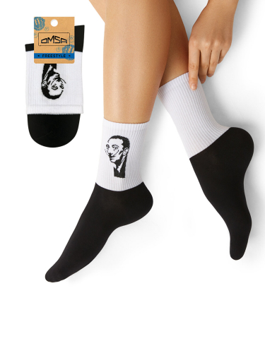 Лаконичный дизайн и авторский оригинальный принт с изображением Фриды и Сальвадора Дали – это беспроигрышное сочетание для создания неординарного образа. Носки OMSA Free Style – незаменимый аксессуар для самовыражения.