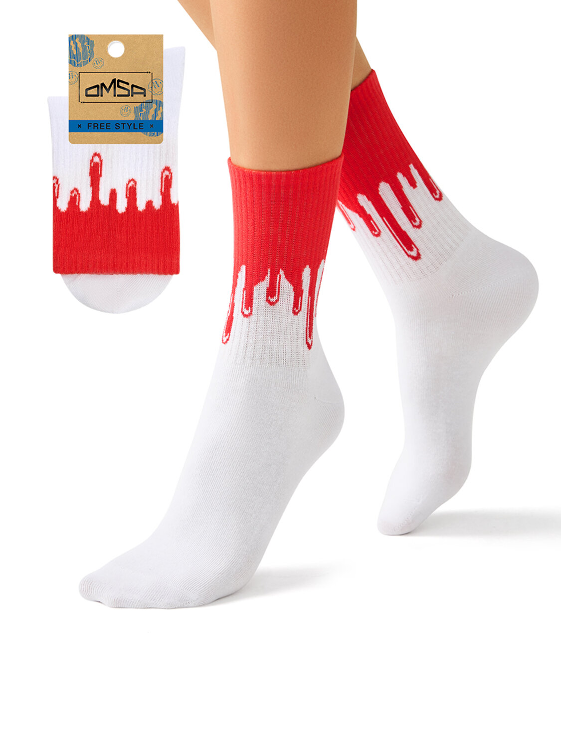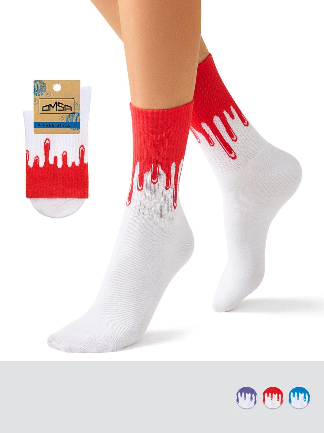 Носки унисекс OMSA с красочным рисунком. Изготовлены из высококачественного хлопка, который позволяет коже дышать, хорошо впитывает влагу и подходит для чувствительной кожи. Удобная резинка обеспечивает идеальное облегание, кеттельный (плоский) шов на мыске создает дополнительный комфорт. Превосходно сохраняют форму и цвет.