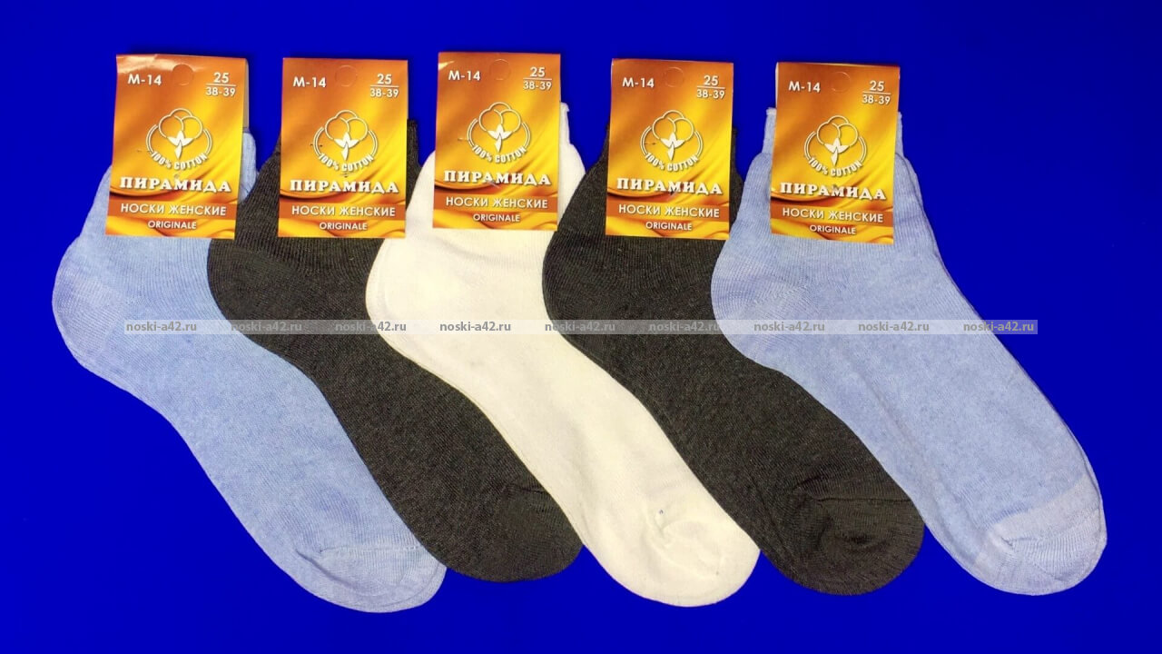 Пирамида носки женские М-14 хлопок гладкие оптом.