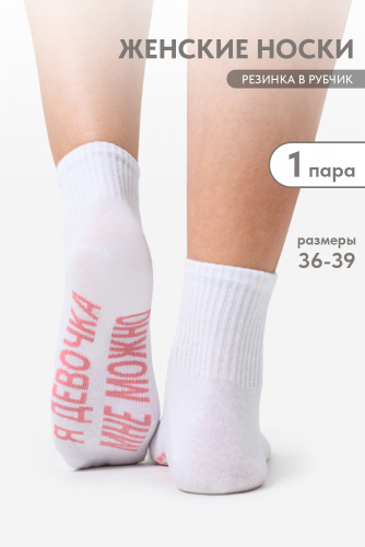 Комплект женских носков 1 пара. Широкая резинка. На стопе надпись Я девочка, мне можно.