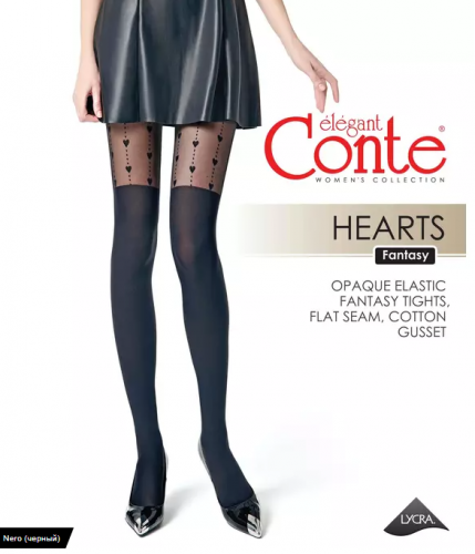 Колготки с имитацией гольфинов и рисунком «сердечки» HEARTS созданы для стильных и индивидуальных образов. Колготки отлично сидят по фигуре и делают ноги визуально стройнее. полиамид 90%/ эластан 10%
