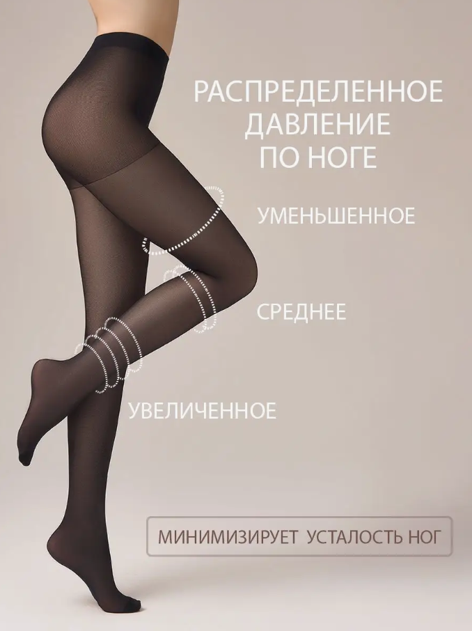 Тонкие шелковистые колготки с распределенным давлением, плотностью 20 ден, формованные, с ластовицей, шортиками и укрепленным мыском.