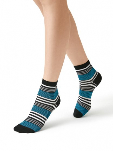 Оптовая продажа. Женские укороченные носки c контрастным принтом в виде повторяющихся полосок и надписью "sport chic". Удобная резинка обеспечивает идеальное облегание, а кеттельный (плоский) шов на мыске создает дополнительный комфорт.