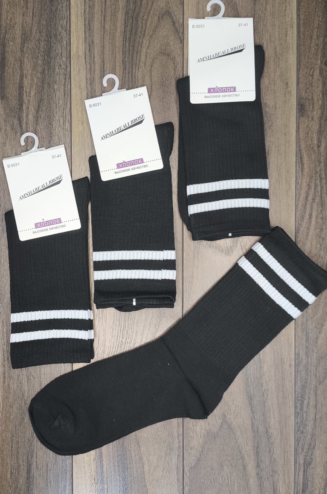 Женские высокие носки - лучшее решение на каждый день! Модель из плотного, эластичного хлопка высокого качества, широкая резинка "в рубчик" отлично держит носок. На паголенке эффектно смотрятся контрастные полоски. Производство фабричный Китай отличного качества.