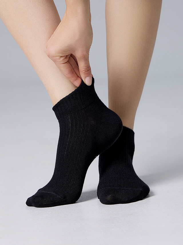 Носки женские черные в наборе — это идеальное сочетание стиля и функциональности для активного образа жизни. Укороченная модель с плотным бортом обеспечивает надежную фиксацию, не сползая и не оставляя следов на коже. Фактурное объемное плетение на передней части следа добавляет удобства при носке обуви: предотвращает скольжение и усиливает амортизацию.