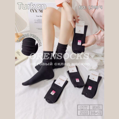 НОСКИ ЖЕНСКИЕ ХЛОПОК ЧЕРНЫЕ ОСЛАБЛЕННАЯ РЕЗИНКА ОТЛИЧНОГО КАЧЕСТВА TURKAN 740