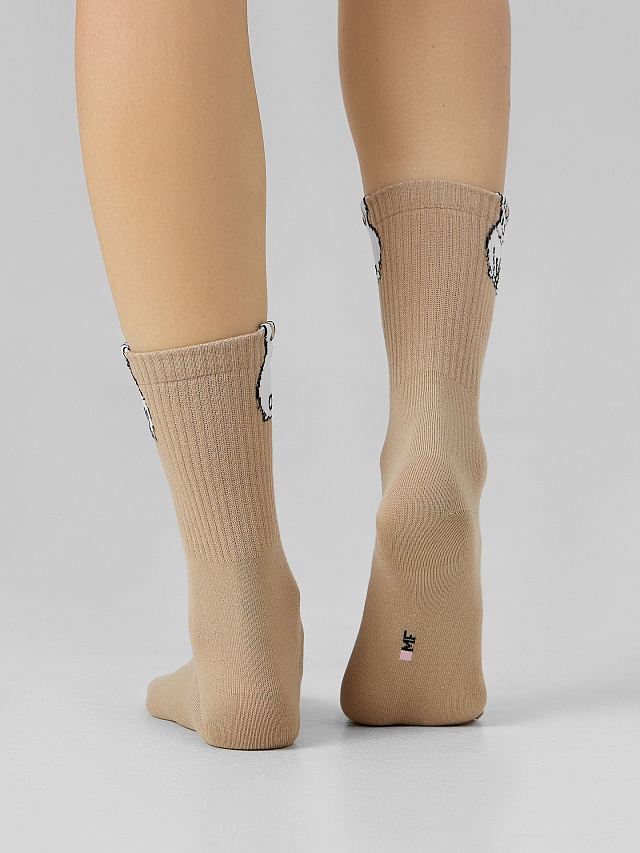 Носки женские высокие с кроликом легко сочетаются с обувью на плоской подошве, кроссовками или ботинками, делая образ завершенным и уютным. Если вы ищете, где купить женские носки с оригинальным дизайном, эта модель станет прекрасным выбором для повседневной носки или в качестве милого подарка.