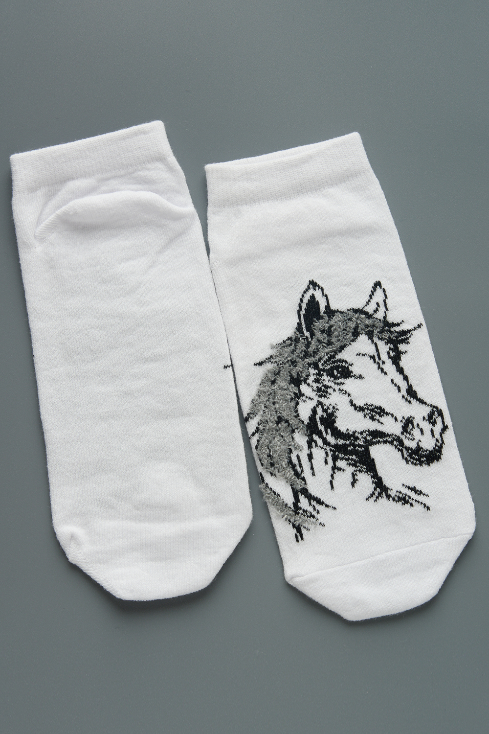 Новогодние женские носочки с символом 2026 года, отличный подарок на праздник коллеге, подруге, сестре или дочке. Расцветка: белый; Состав: 78% х/б 20% ПЭ 2% эластан.
