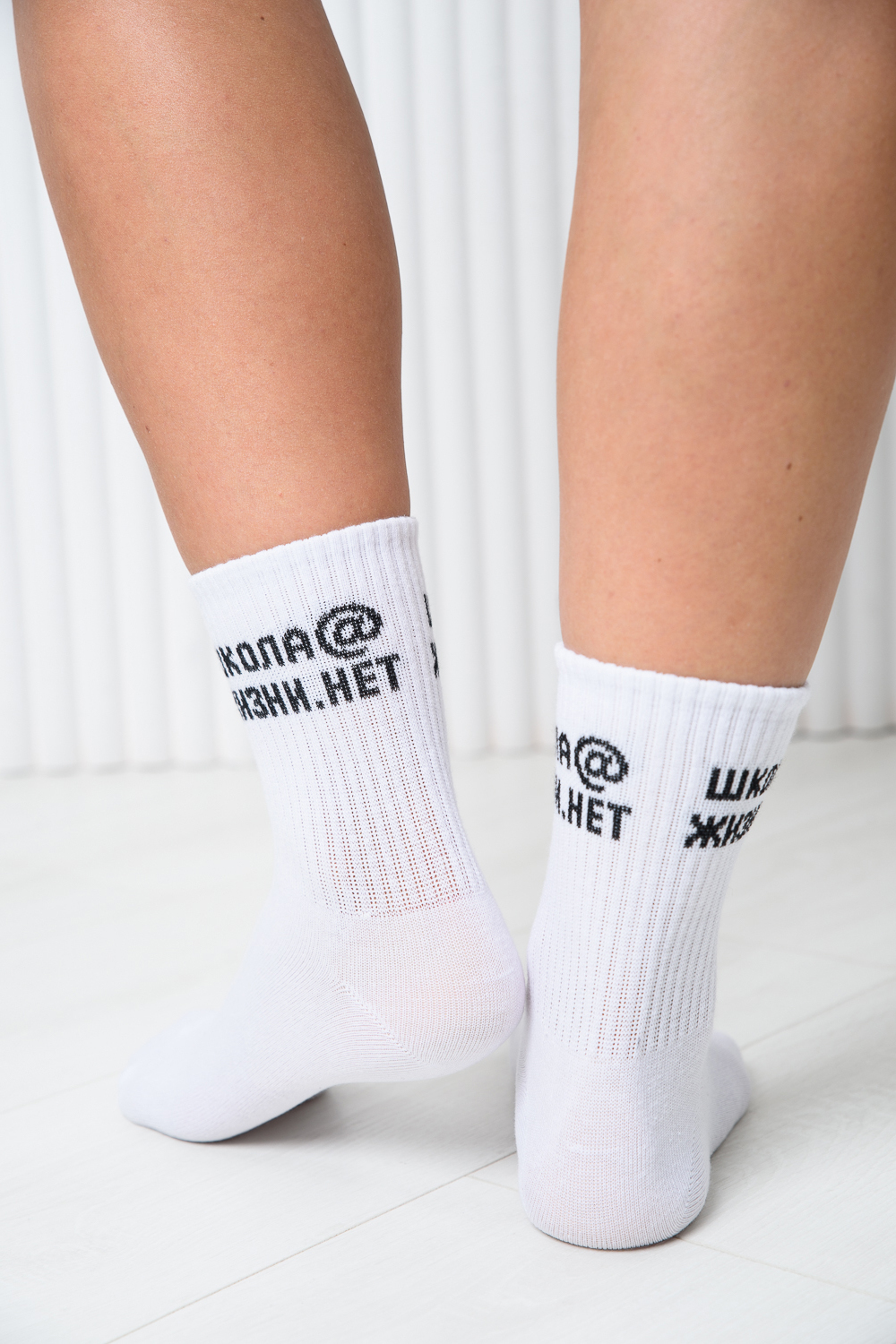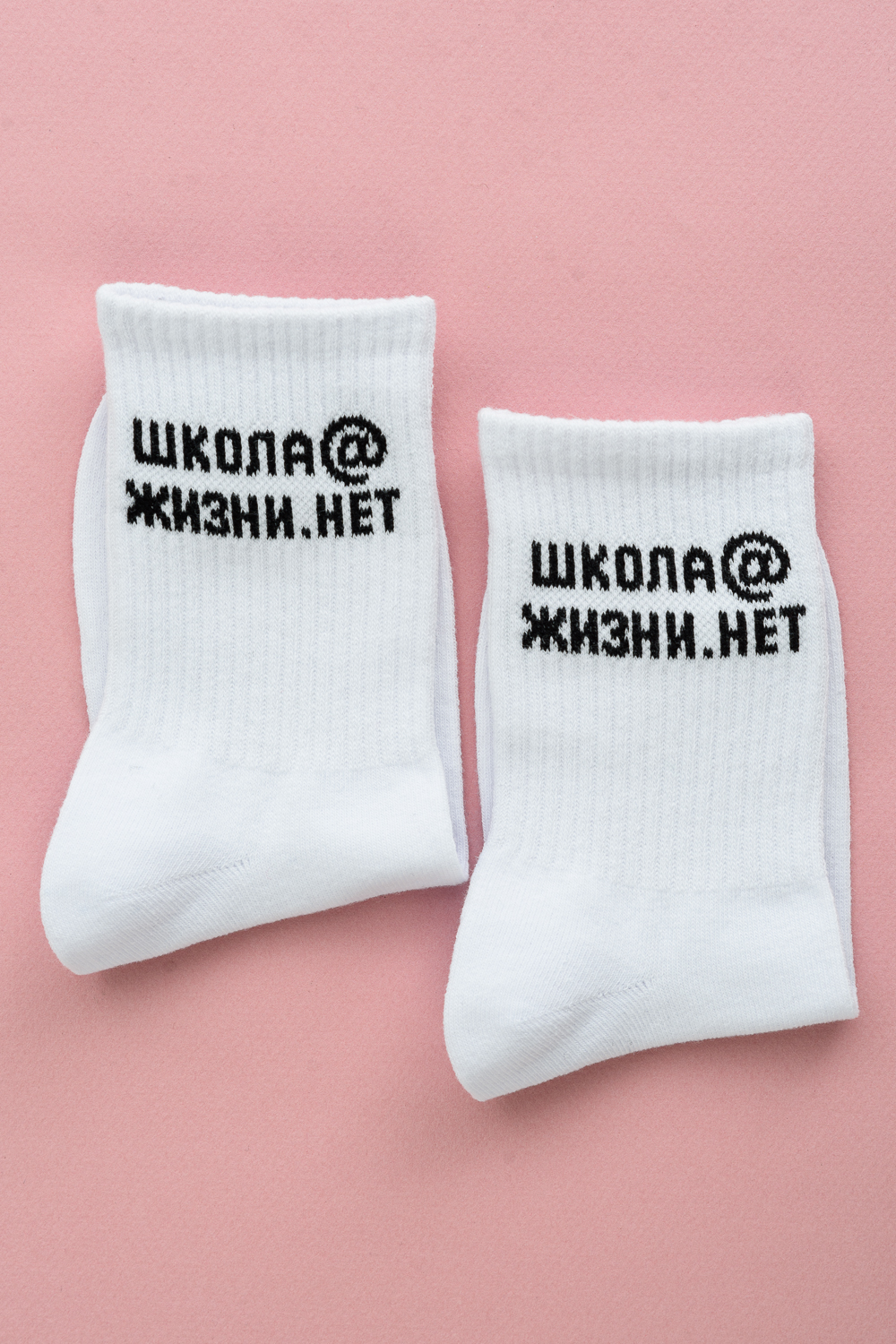 Комплект женских носков 2 пары. Широкая резинка. По верхней части носка надпись "Школ@ жизни. нет." Расцветка: белый;черный; Состав: 77% х/б 21% ПА 2% эластан.