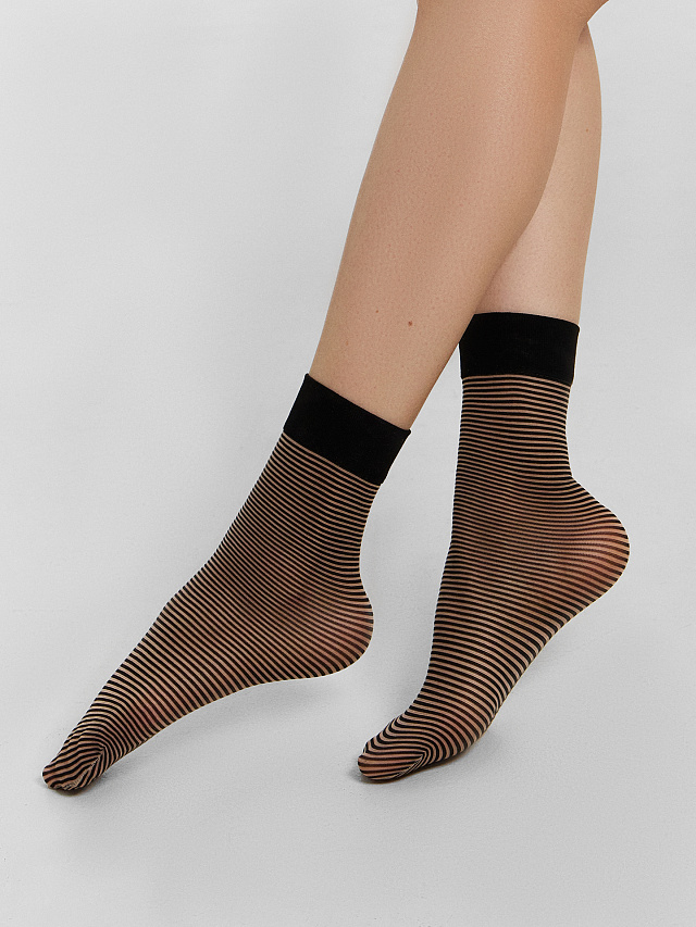 Женские высокие носки из полиамида с рисунком в виде поперечной тонкой полоски, плотностью 60 den. Выполнены из высококачественного материала. Носки капроновые с усиленным мыском, устойчивы к истиранию пальчиковой зоны. Тонкие, но в то же время достаточно прочные, хватит при аккуратной носке на длительный период времени. Идеально сочетаются с различной обувью. Эффектно смотрятся с шортами, юбкой, платьем, брюками. Их одевают под туфли, босоножки, балетки, кроссовки, ботинки, с брюками, джинсами, юбками и под платье. Повседневные, можно носить куда угодно. Не растягиваются, отлично держат форму. Различные цвета в линейке. Рекомендуем!