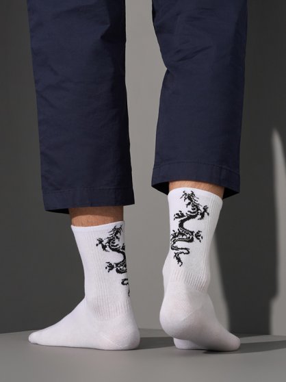 Оптовая продажа. Короткие носки унисекс с рисунком в виде дракона на резинке, из высококачественного хлопка с добавлением полиамида и эластана, обеспечивающие отличную вентиляцию воздуха и хорошую циркуляцию влаги. Материал обеспечивает плотную посадку и повторяет все изгибы тела не стесняя движений, позволяет легко растягиваться и возвращаться в исходное положение. Повседневные носки с удобной посадкой, мягкой широкой резинкой. Кеттельный (плоский) шов на мыске для дополнительного комфорта.
