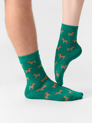 рис.2594 Носки унисекс классические, махровые с рисунком в виде оленей