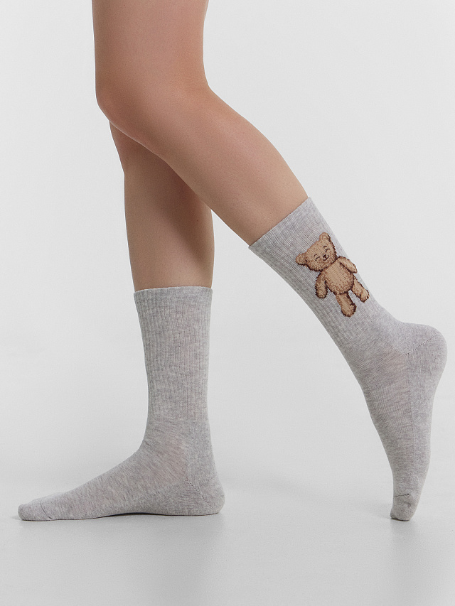 рис.2533 Женские носки с высоким плотным бортом, плюшевым следом и рисунком в виде медвежат.