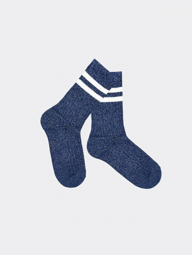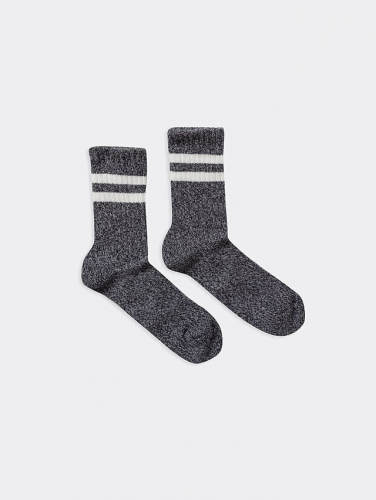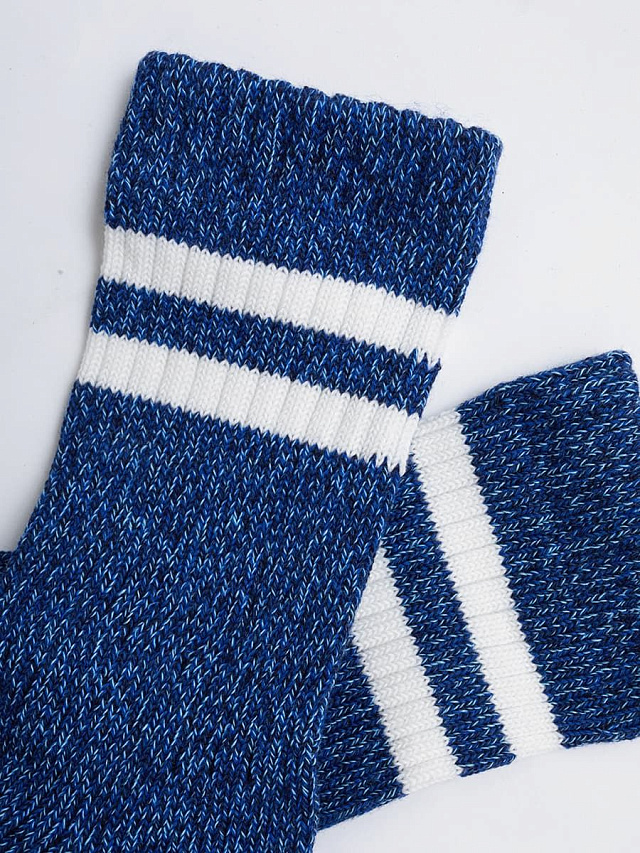 рис.1551 Женские носки высокие классические из толстого хлопка Мулине, с рисунком в виде двух полосок на борту, перекидка лапшей.