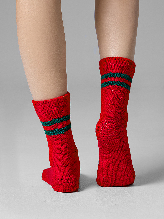 Носки женские красные с полосками — элегантный аксессуар для повседневного гардероба. Модель с высоким голенищем украшена рисунком в виде контрастных полосок. Носки выполнены из комбинированных материалов, что обеспечивает идеальный баланс комфорта и функциональности.