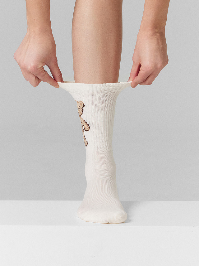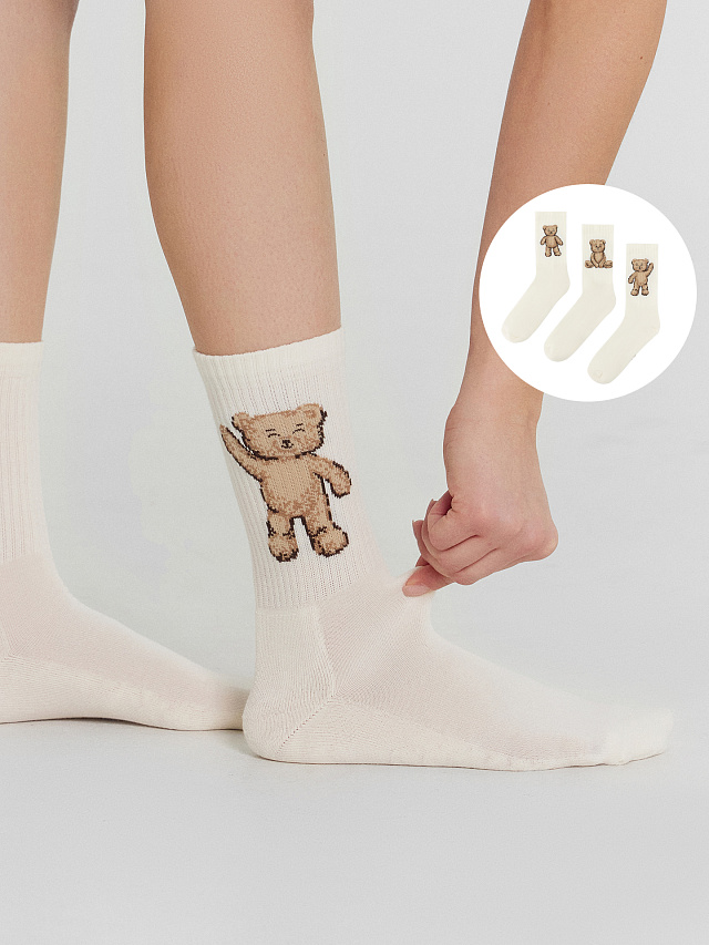 Носки женские кремовые с изображением медвежат в наборе, 3 пары