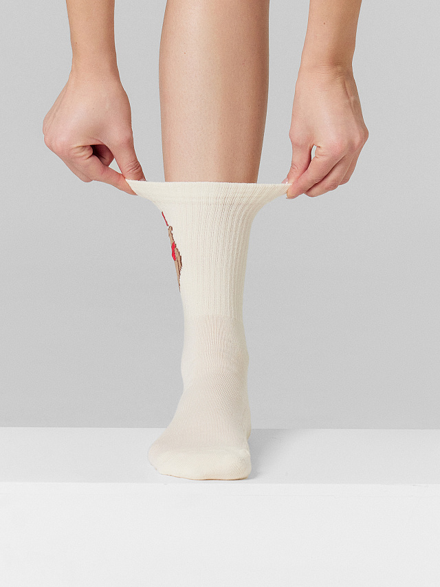 рис.2973 Женские носки с высоким плотным бортом, плюшевым следом и рисунком в виде мишки.