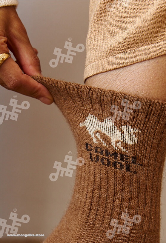 Известно, что верблюжья шерсть используется уже давно в оснащении арктических экспедиций, форме для специальных подразделений армии. Наиболее качественным считается шерсть двугорбых верблюдом бактрианов обитающих в высокогорьях Монголии. Шерсть монгольского верблюда эластична, прочна, обладает извитостью волокна, что способствует получению рыхлой пушистой и упругой пряжи, а так же увеличению срока носки изделий. Благодаря хорошей упругости изделия из верблюжьей шерсти не сминаются и долго сохраняют хороший внешний вид. Основа на эластановой нити дополнительно придает носкам из верблюжьей шерсти прочность и свойство хорошо тянуться, а так же при стирки не садиться.
