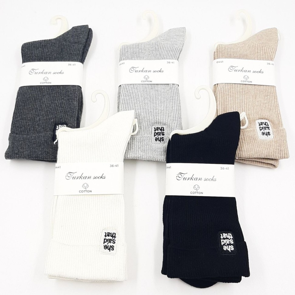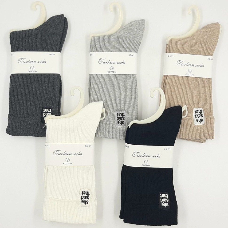 TURKAN Носки женские Очень Высокие Хлопок ЛАПША с заворотом She Said That (36-41) (М0441) К10